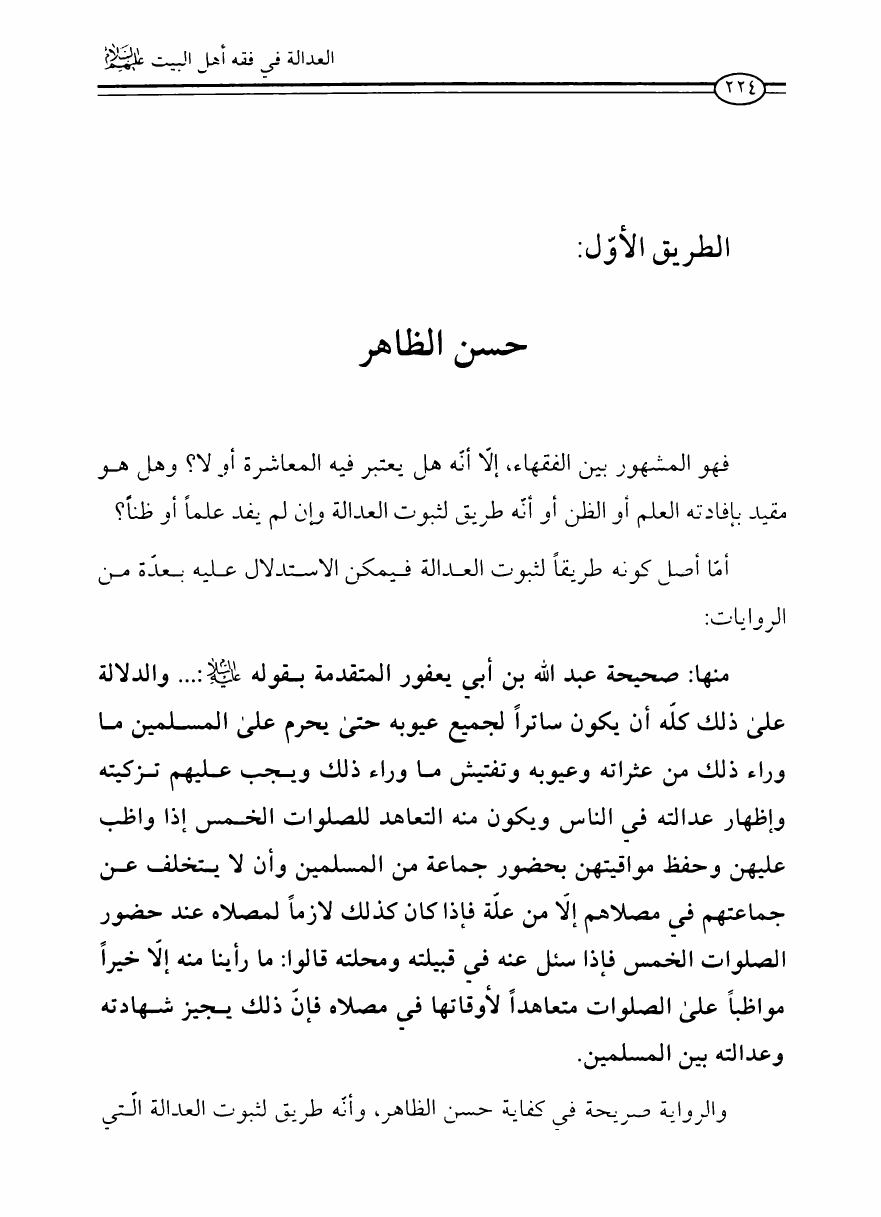 نام کتاب : العدالة في فقه أهل البيت عليهم السلام، تقريراً لبحث أية الله الحاج الشيخ مسلم الداوري نویسنده : الشيخ محمد علي صالح المعلم جلد : 1 صفحه : 224