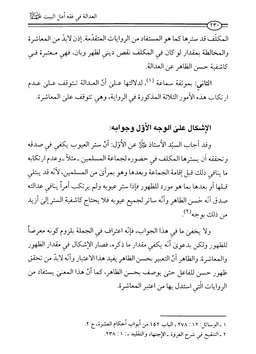 نام کتاب : العدالة في فقه أهل البيت عليهم السلام، تقريراً لبحث أية الله الحاج الشيخ مسلم الداوري نویسنده : الشيخ محمد علي صالح المعلم جلد : 1 صفحه : 230