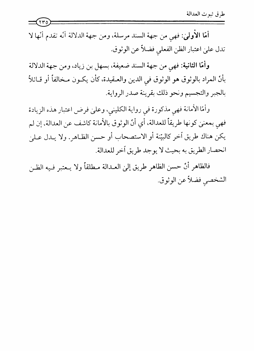 نام کتاب : العدالة في فقه أهل البيت عليهم السلام، تقريراً لبحث أية الله الحاج الشيخ مسلم الداوري نویسنده : الشيخ محمد علي صالح المعلم جلد : 1 صفحه : 235