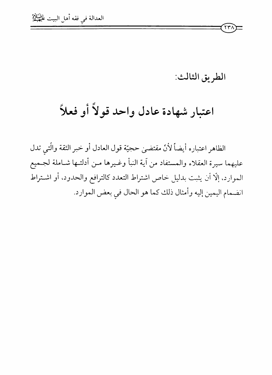 نام کتاب : العدالة في فقه أهل البيت عليهم السلام، تقريراً لبحث أية الله الحاج الشيخ مسلم الداوري نویسنده : الشيخ محمد علي صالح المعلم جلد : 1 صفحه : 238