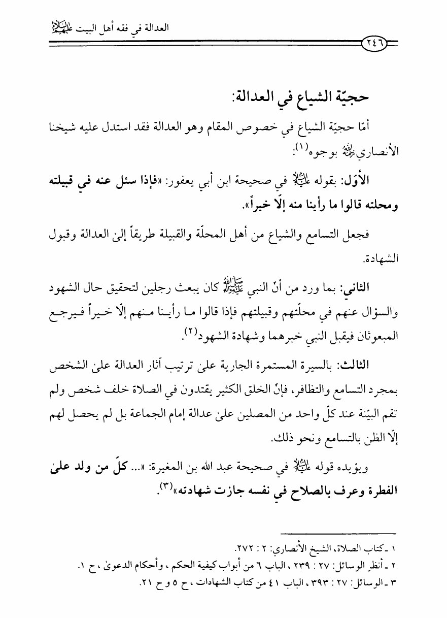 نام کتاب : العدالة في فقه أهل البيت عليهم السلام، تقريراً لبحث أية الله الحاج الشيخ مسلم الداوري نویسنده : الشيخ محمد علي صالح المعلم جلد : 1 صفحه : 246