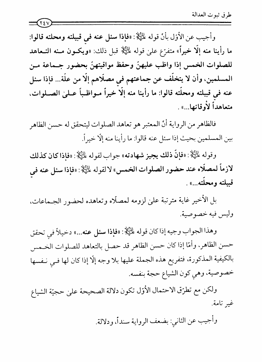نام کتاب : العدالة في فقه أهل البيت عليهم السلام، تقريراً لبحث أية الله الحاج الشيخ مسلم الداوري نویسنده : الشيخ محمد علي صالح المعلم جلد : 1 صفحه : 247
