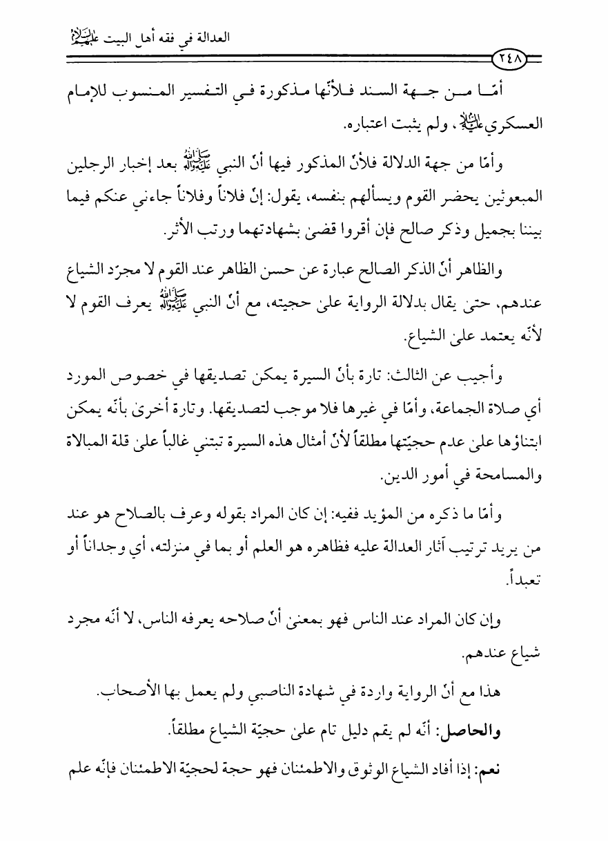 نام کتاب : العدالة في فقه أهل البيت عليهم السلام، تقريراً لبحث أية الله الحاج الشيخ مسلم الداوري نویسنده : الشيخ محمد علي صالح المعلم جلد : 1 صفحه : 248
