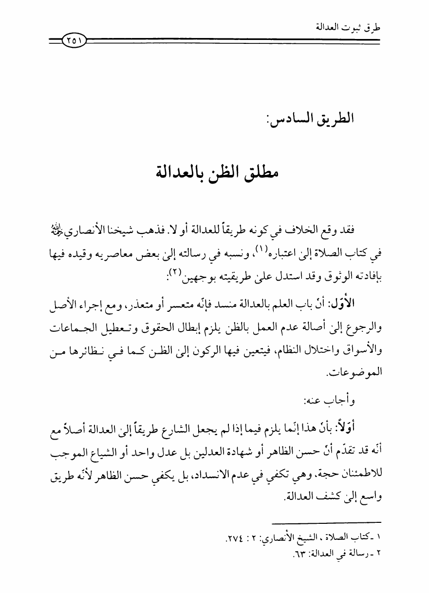 نام کتاب : العدالة في فقه أهل البيت عليهم السلام، تقريراً لبحث أية الله الحاج الشيخ مسلم الداوري نویسنده : الشيخ محمد علي صالح المعلم جلد : 1 صفحه : 251