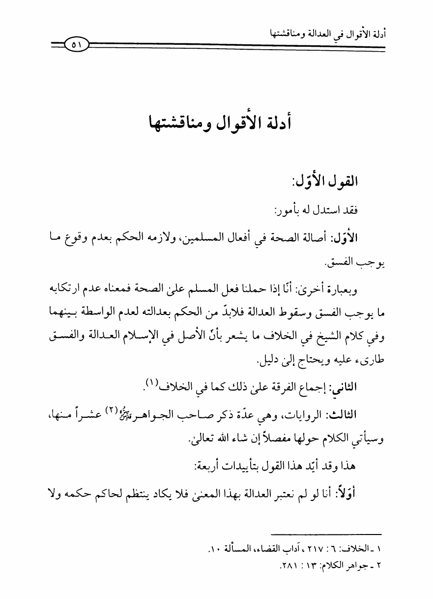 نام کتاب : العدالة في فقه أهل البيت عليهم السلام، تقريراً لبحث أية الله الحاج الشيخ مسلم الداوري نویسنده : الشيخ محمد علي صالح المعلم جلد : 1 صفحه : 51