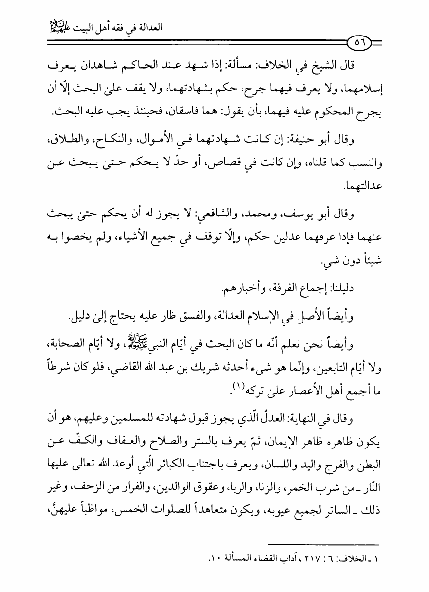 نام کتاب : العدالة في فقه أهل البيت عليهم السلام، تقريراً لبحث أية الله الحاج الشيخ مسلم الداوري نویسنده : الشيخ محمد علي صالح المعلم جلد : 1 صفحه : 56