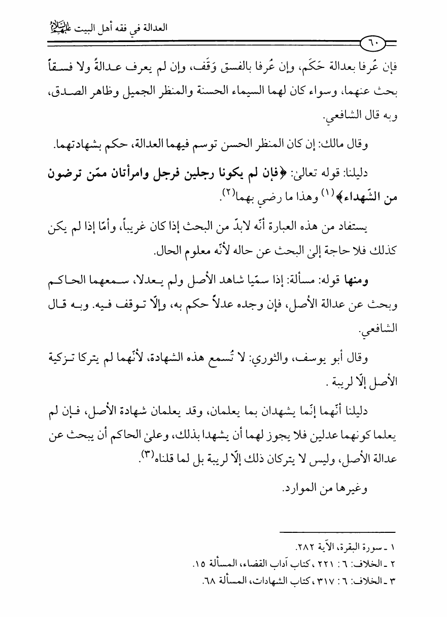 نام کتاب : العدالة في فقه أهل البيت عليهم السلام، تقريراً لبحث أية الله الحاج الشيخ مسلم الداوري نویسنده : الشيخ محمد علي صالح المعلم جلد : 1 صفحه : 60