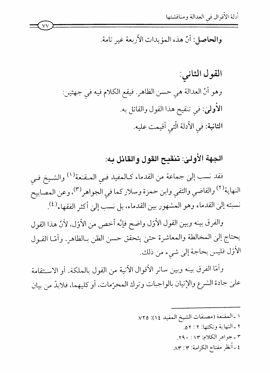 نام کتاب : العدالة في فقه أهل البيت عليهم السلام، تقريراً لبحث أية الله الحاج الشيخ مسلم الداوري نویسنده : الشيخ محمد علي صالح المعلم جلد : 1 صفحه : 77