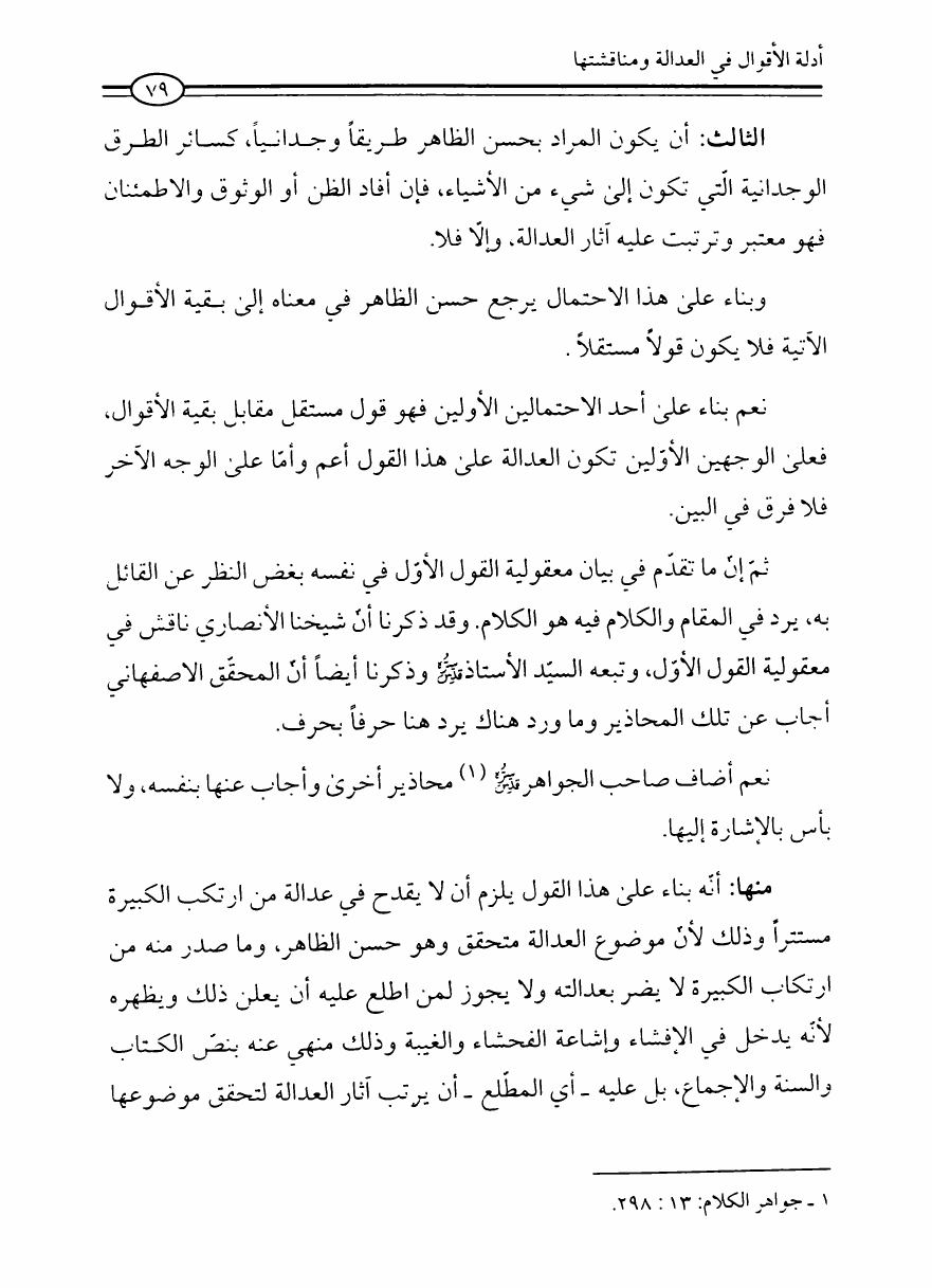 نام کتاب : العدالة في فقه أهل البيت عليهم السلام، تقريراً لبحث أية الله الحاج الشيخ مسلم الداوري نویسنده : الشيخ محمد علي صالح المعلم جلد : 1 صفحه : 79