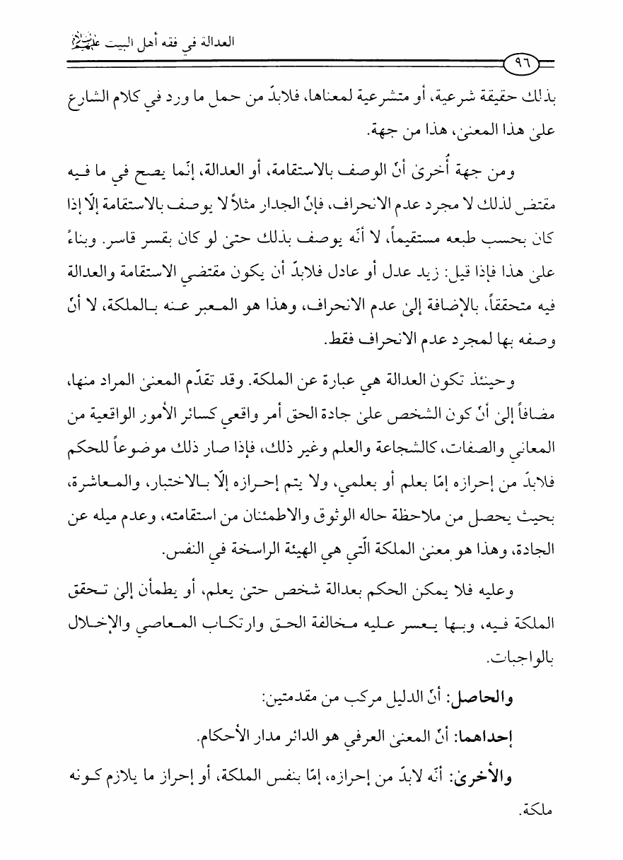 نام کتاب : العدالة في فقه أهل البيت عليهم السلام، تقريراً لبحث أية الله الحاج الشيخ مسلم الداوري نویسنده : الشيخ محمد علي صالح المعلم جلد : 1 صفحه : 96