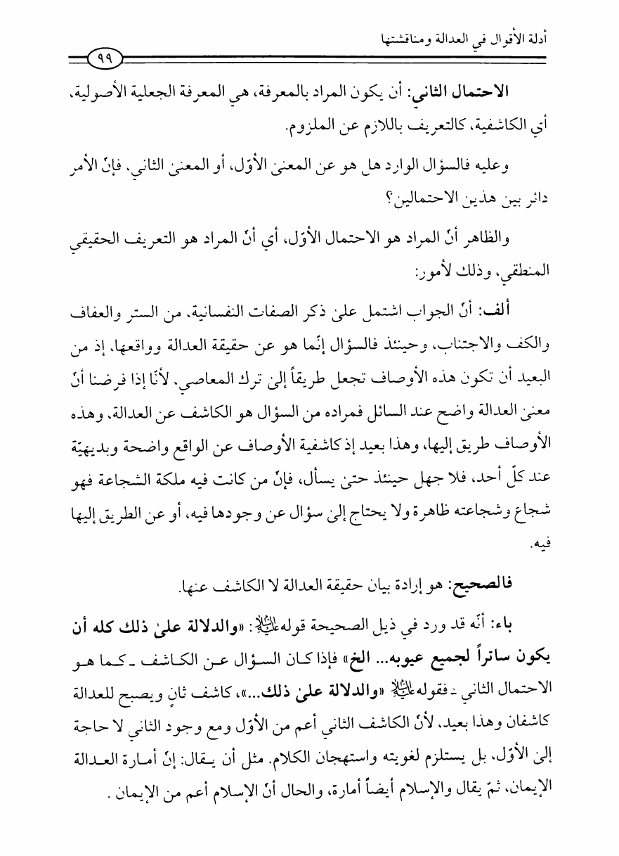 نام کتاب : العدالة في فقه أهل البيت عليهم السلام، تقريراً لبحث أية الله الحاج الشيخ مسلم الداوري نویسنده : الشيخ محمد علي صالح المعلم جلد : 1 صفحه : 99