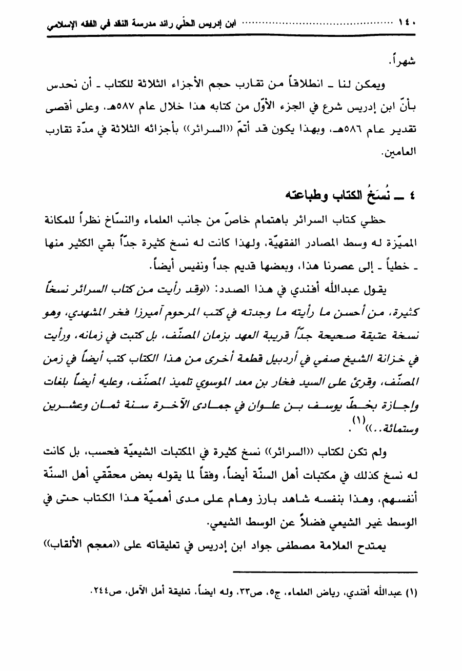 ابن إدريس الحلي ، رائد مدرسة النقد في الفقه الإستدلالي