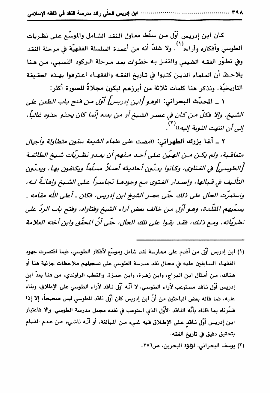 ابن إدريس الحلي ، رائد مدرسة النقد في الفقه الإستدلالي