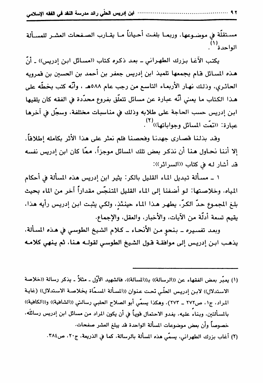 ابن إدريس الحلي ، رائد مدرسة النقد في الفقه الإستدلالي