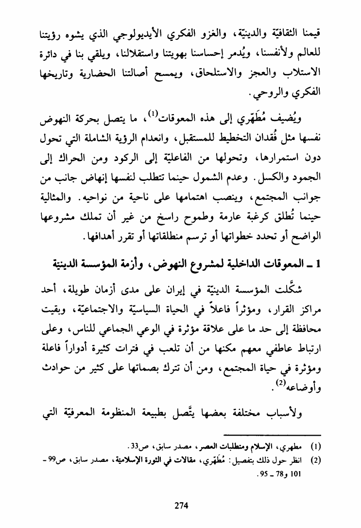 مرتضى مطهري ، الإشكالية الإصلاحية وتجديد الفكر الإسلامي