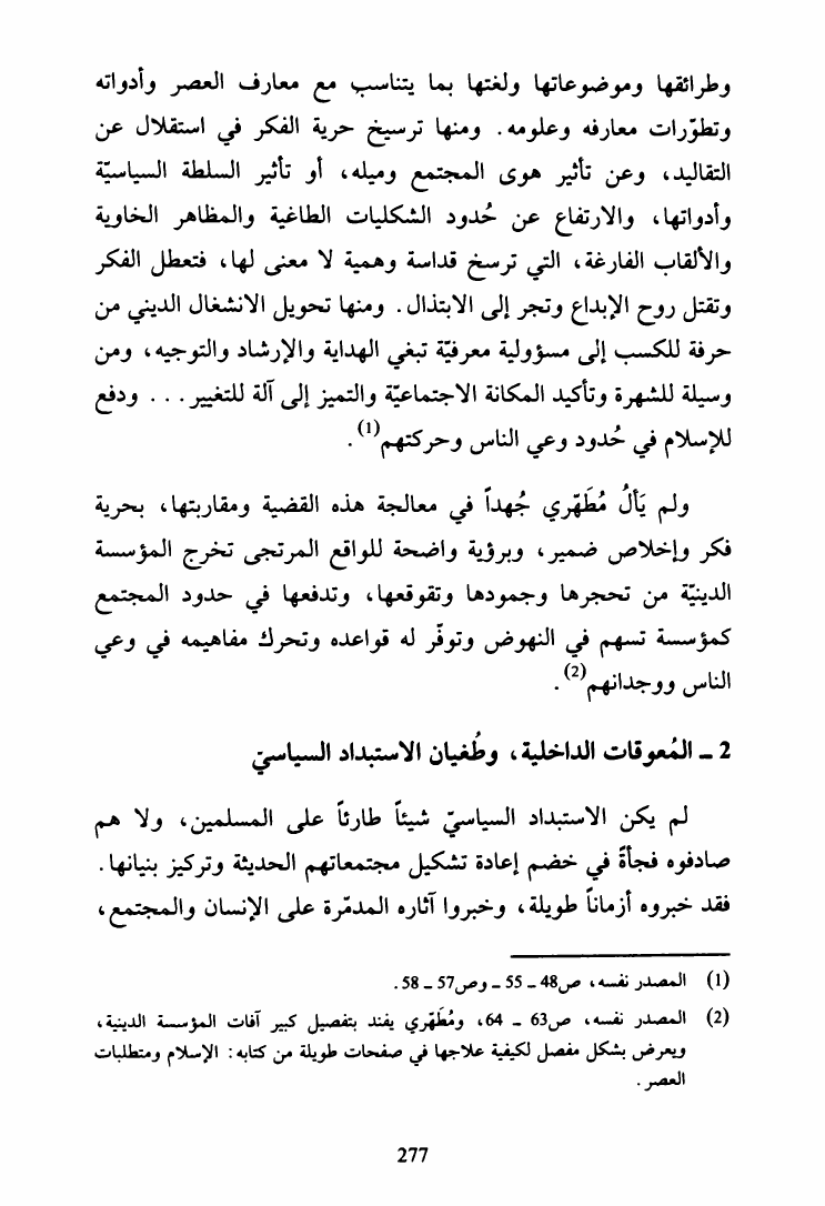 مرتضى مطهري ، الإشكالية الإصلاحية وتجديد الفكر الإسلامي