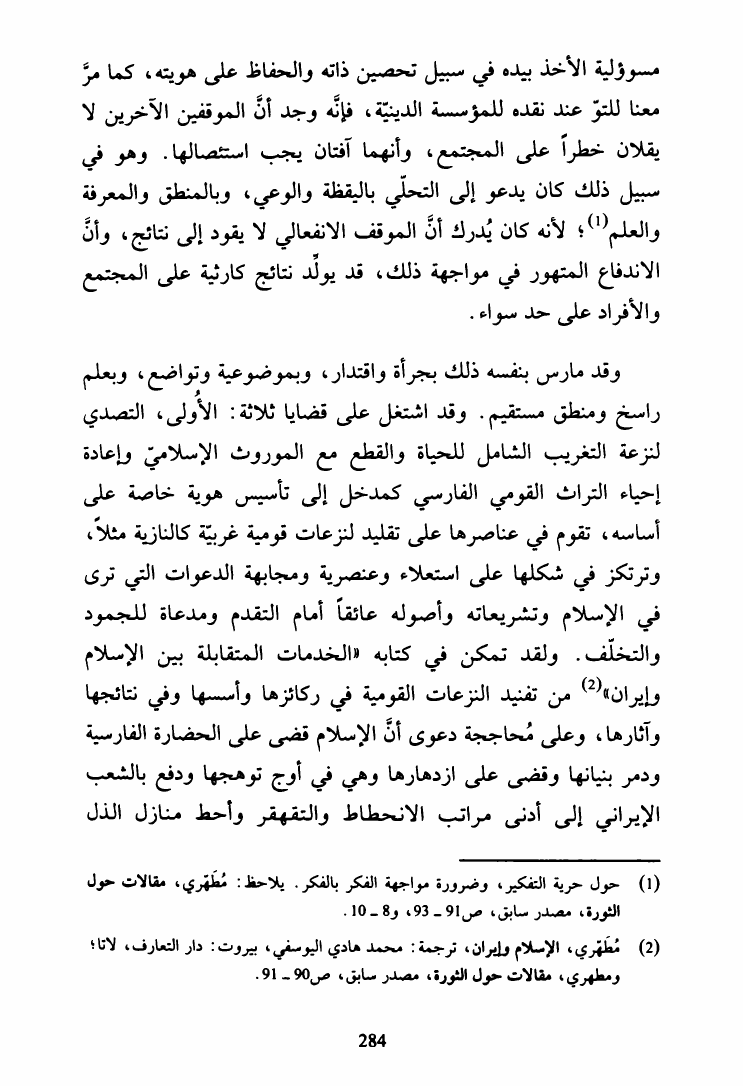 مرتضى مطهري ، الإشكالية الإصلاحية وتجديد الفكر الإسلامي