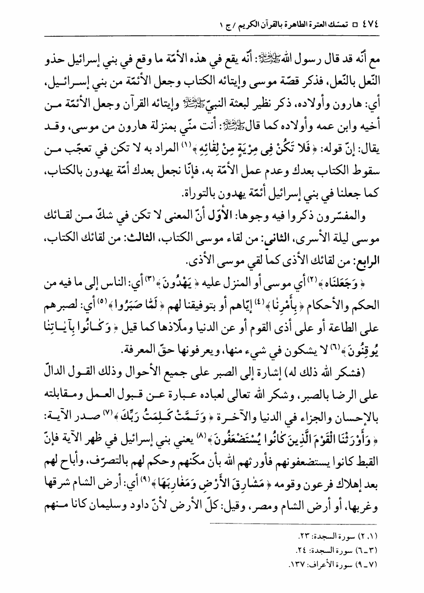 نام کتاب : تمسك العترة الطاهرة بالقرآن الكريم، دراسة تفصيلية حول الآيات التي تمسك بها الأئمة ع - ج1ج2 نویسنده : الشيخ محمد جعفر الطبسي جلد : 1 صفحه : 474