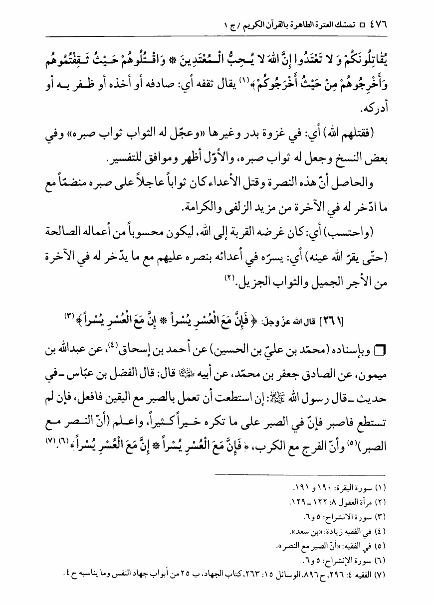 نام کتاب : تمسك العترة الطاهرة بالقرآن الكريم، دراسة تفصيلية حول الآيات التي تمسك بها الأئمة ع - ج1ج2 نویسنده : الشيخ محمد جعفر الطبسي جلد : 1 صفحه : 476