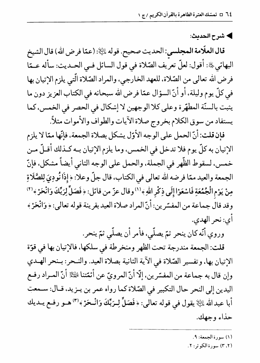 نام کتاب : تمسك العترة الطاهرة بالقرآن الكريم، دراسة تفصيلية حول الآيات التي تمسك بها الأئمة ع - ج1ج2 نویسنده : الشيخ محمد جعفر الطبسي جلد : 1 صفحه : 64