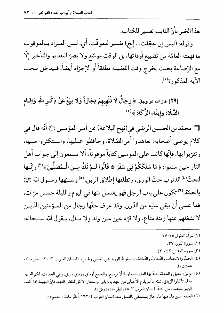 نام کتاب : تمسك العترة الطاهرة بالقرآن الكريم، دراسة تفصيلية حول الآيات التي تمسك بها الأئمة ع - ج1ج2 نویسنده : الشيخ محمد جعفر الطبسي جلد : 1 صفحه : 73