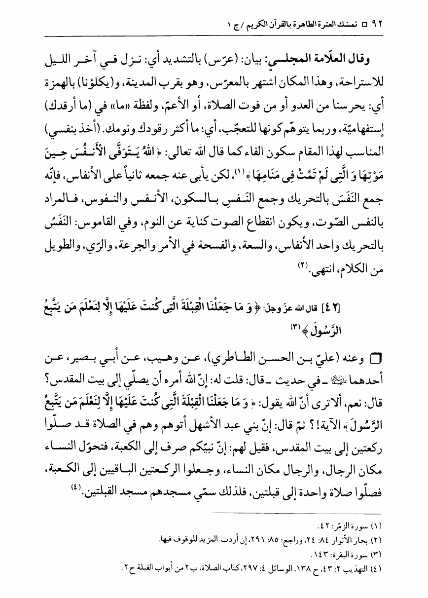 نام کتاب : تمسك العترة الطاهرة بالقرآن الكريم، دراسة تفصيلية حول الآيات التي تمسك بها الأئمة ع - ج1ج2 نویسنده : الشيخ محمد جعفر الطبسي جلد : 1 صفحه : 92