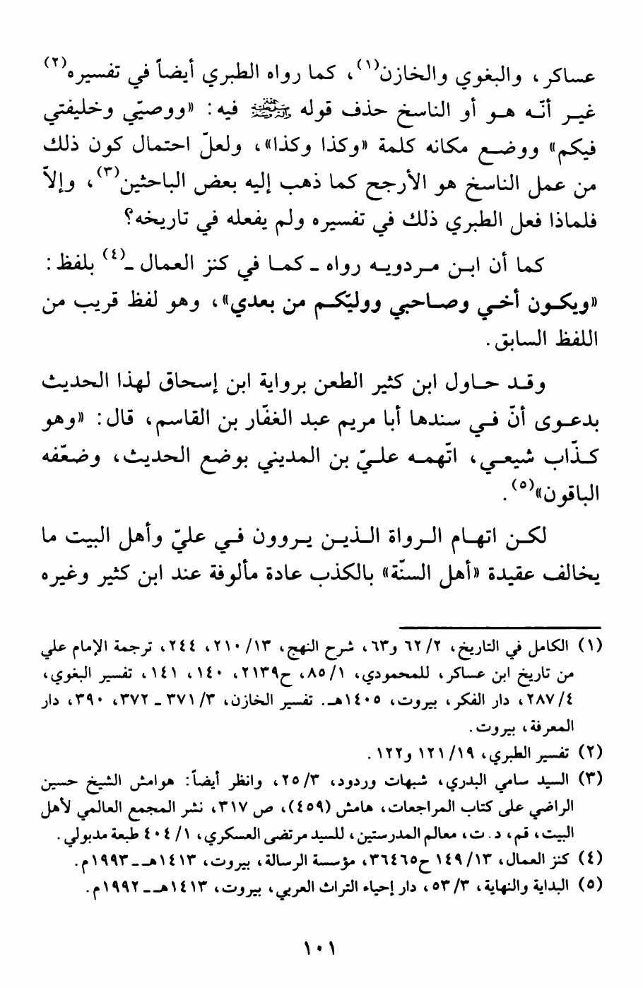 نام کتاب : التشيع المفترى عليه ، مداخلات وهوامش نقدية على كتاب (تطور الفكر السياسي الشيعي من الشورى إلى ولاية الفقيه) نویسنده : خالد ابا ذر العطية جلد : 1 صفحه : 101