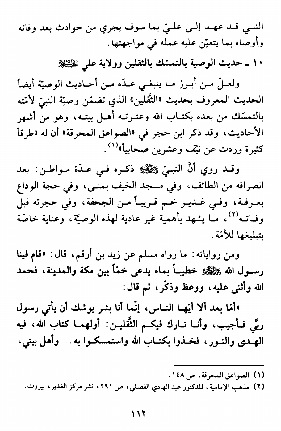 نام کتاب : التشيع المفترى عليه ، مداخلات وهوامش نقدية على كتاب (تطور الفكر السياسي الشيعي من الشورى إلى ولاية الفقيه) نویسنده : خالد ابا ذر العطية جلد : 1 صفحه : 112