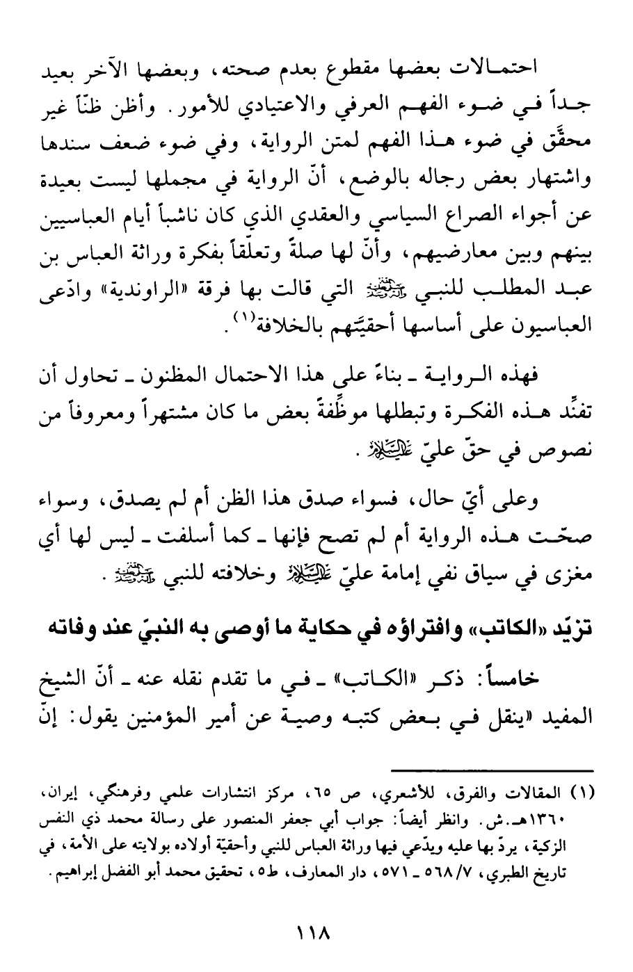 نام کتاب : التشيع المفترى عليه ، مداخلات وهوامش نقدية على كتاب (تطور الفكر السياسي الشيعي من الشورى إلى ولاية الفقيه) نویسنده : خالد ابا ذر العطية جلد : 1 صفحه : 118