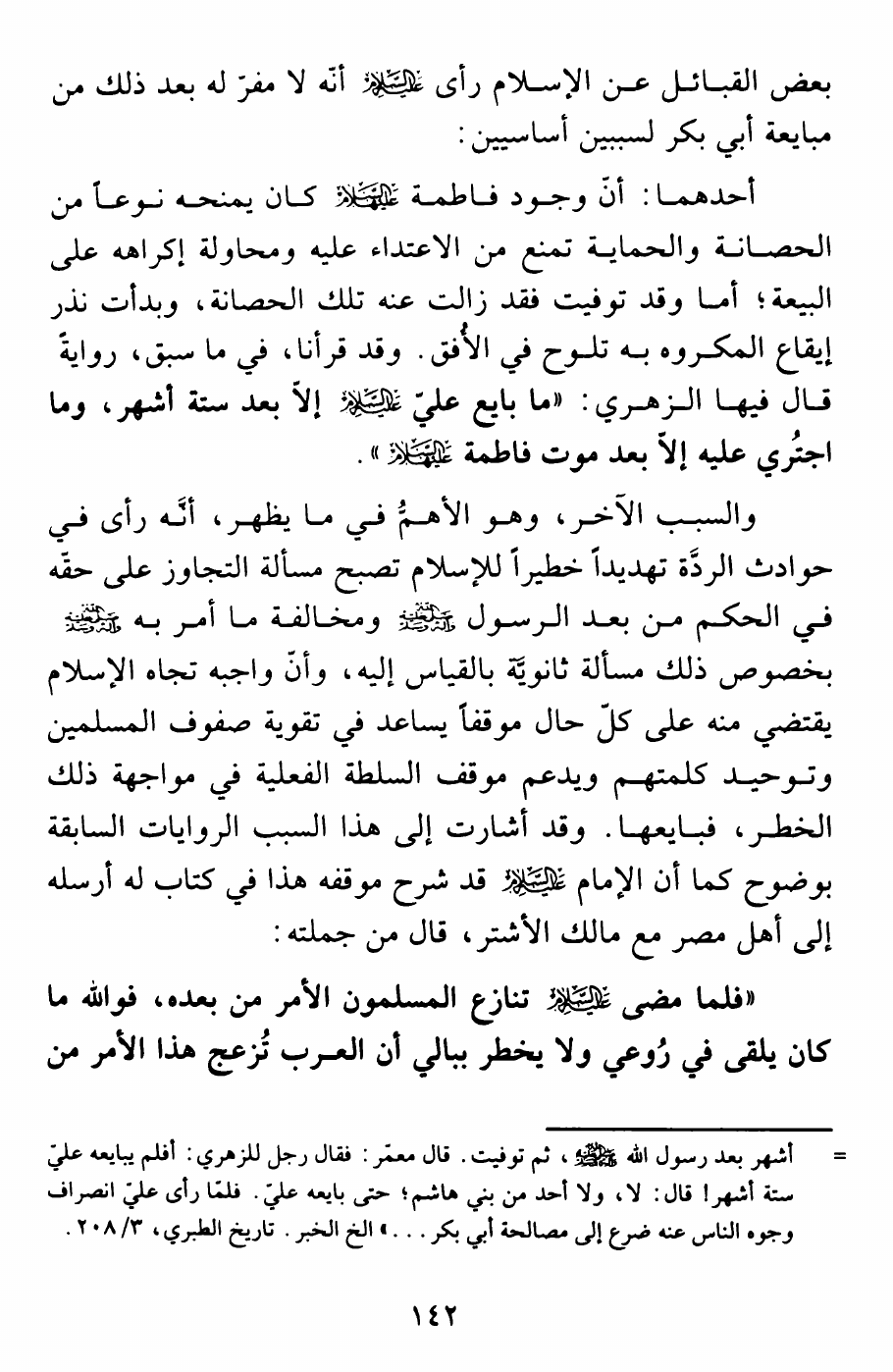 نام کتاب : التشيع المفترى عليه ، مداخلات وهوامش نقدية على كتاب (تطور الفكر السياسي الشيعي من الشورى إلى ولاية الفقيه) نویسنده : خالد ابا ذر العطية جلد : 1 صفحه : 142