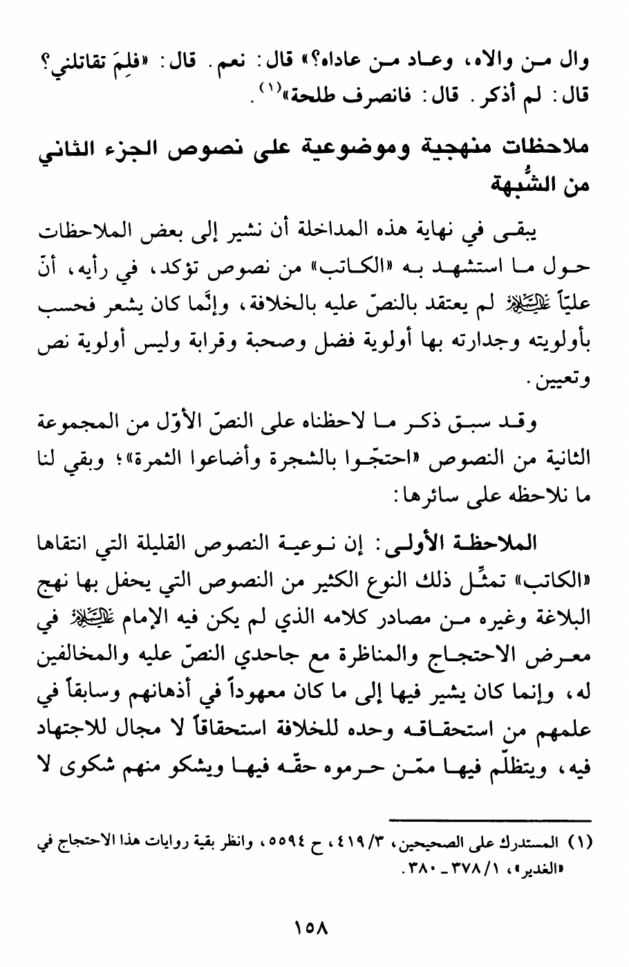 نام کتاب : التشيع المفترى عليه ، مداخلات وهوامش نقدية على كتاب (تطور الفكر السياسي الشيعي من الشورى إلى ولاية الفقيه) نویسنده : خالد ابا ذر العطية جلد : 1 صفحه : 158