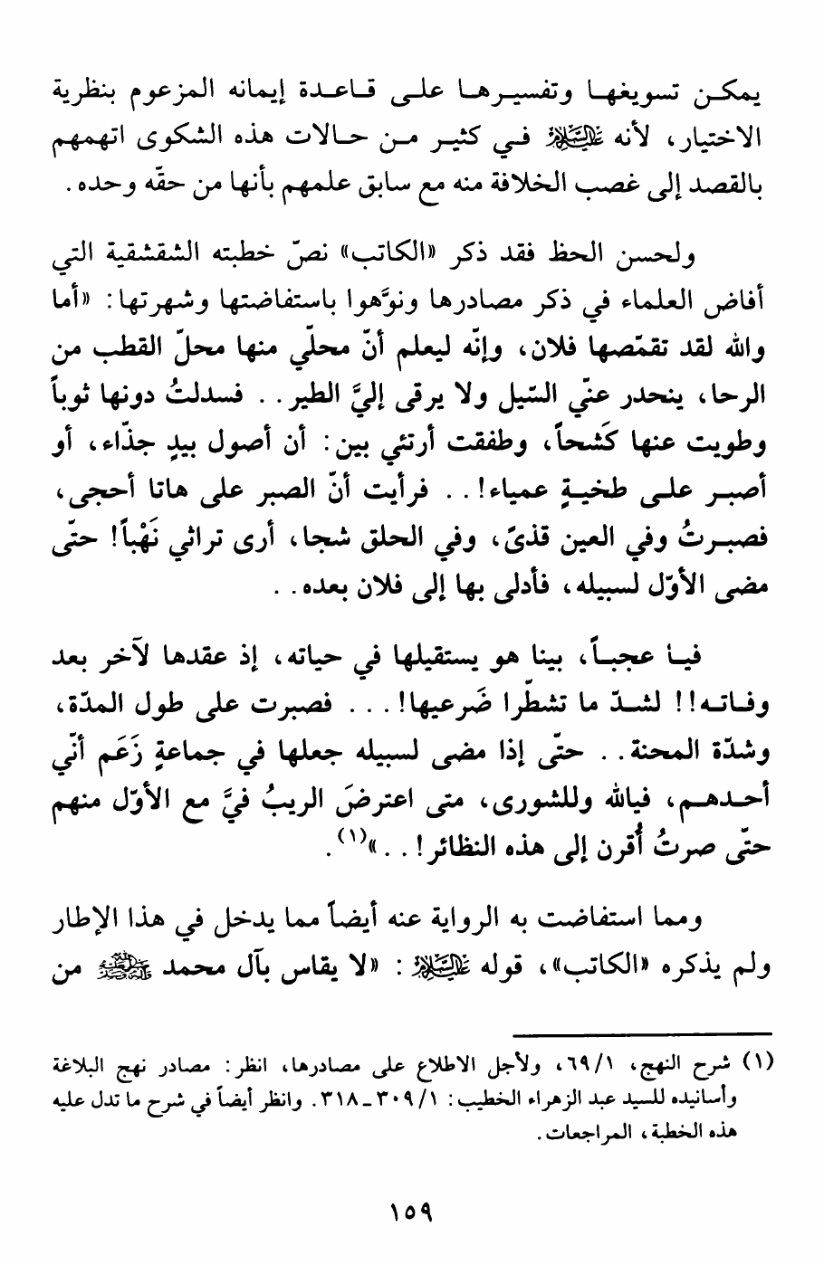 نام کتاب : التشيع المفترى عليه ، مداخلات وهوامش نقدية على كتاب (تطور الفكر السياسي الشيعي من الشورى إلى ولاية الفقيه) نویسنده : خالد ابا ذر العطية جلد : 1 صفحه : 159