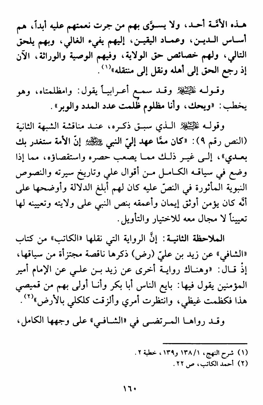 نام کتاب : التشيع المفترى عليه ، مداخلات وهوامش نقدية على كتاب (تطور الفكر السياسي الشيعي من الشورى إلى ولاية الفقيه) نویسنده : خالد ابا ذر العطية جلد : 1 صفحه : 160