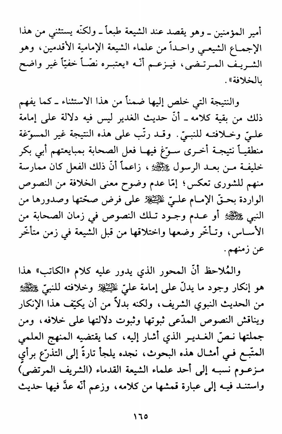 نام کتاب : التشيع المفترى عليه ، مداخلات وهوامش نقدية على كتاب (تطور الفكر السياسي الشيعي من الشورى إلى ولاية الفقيه) نویسنده : خالد ابا ذر العطية جلد : 1 صفحه : 165