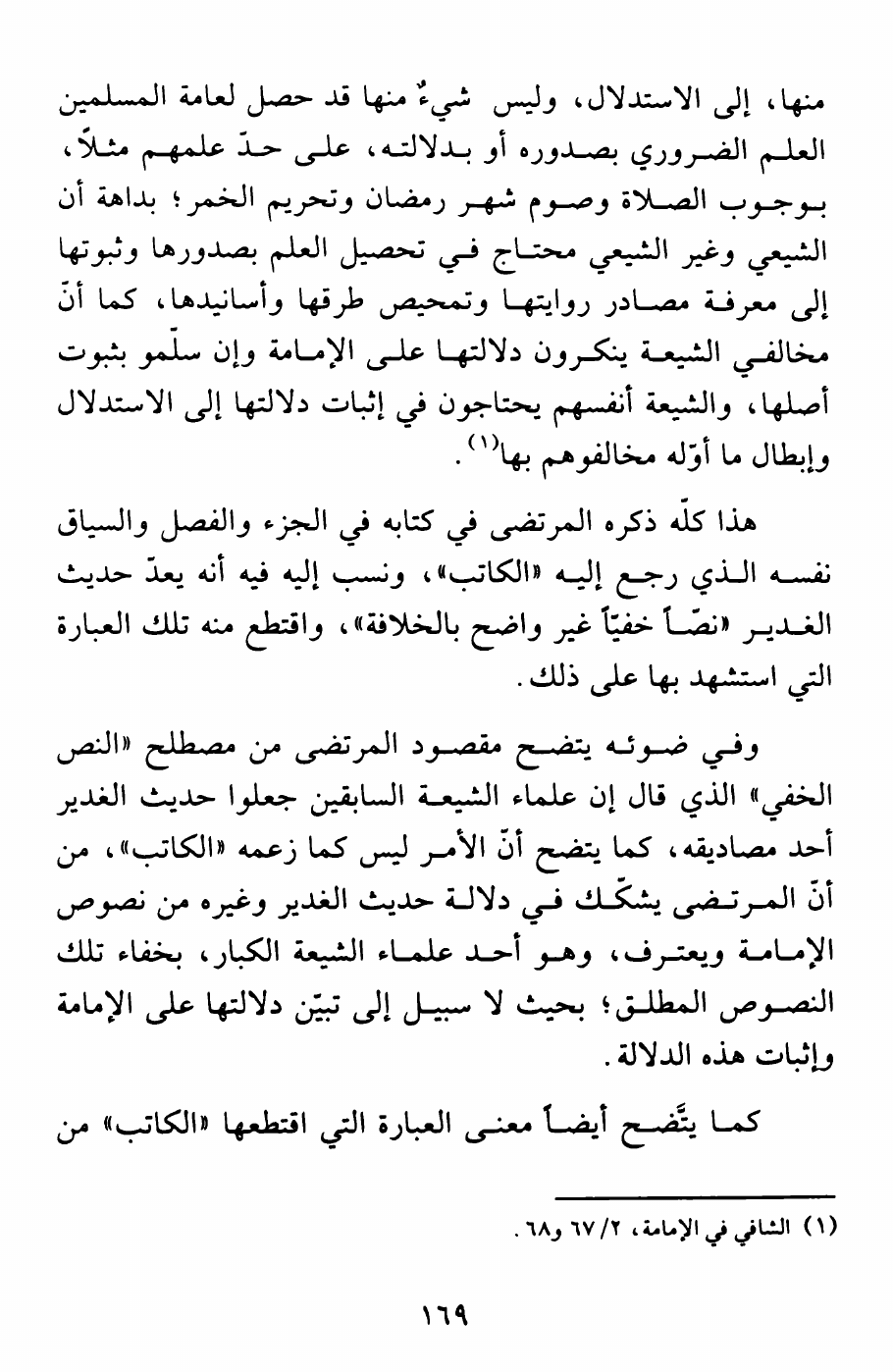 نام کتاب : التشيع المفترى عليه ، مداخلات وهوامش نقدية على كتاب (تطور الفكر السياسي الشيعي من الشورى إلى ولاية الفقيه) نویسنده : خالد ابا ذر العطية جلد : 1 صفحه : 169