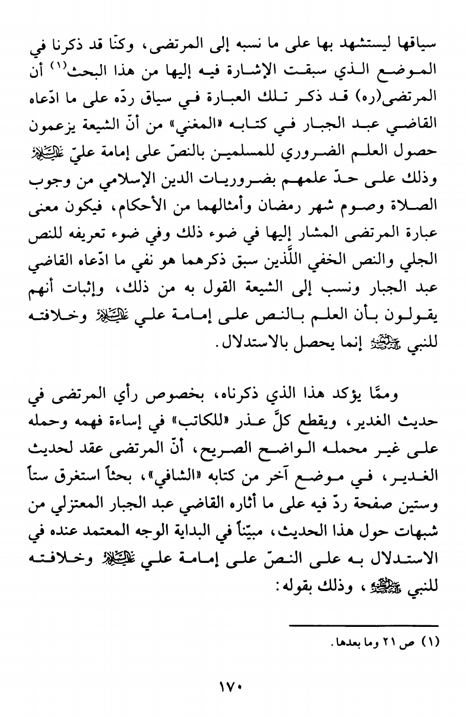 نام کتاب : التشيع المفترى عليه ، مداخلات وهوامش نقدية على كتاب (تطور الفكر السياسي الشيعي من الشورى إلى ولاية الفقيه) نویسنده : خالد ابا ذر العطية جلد : 1 صفحه : 170