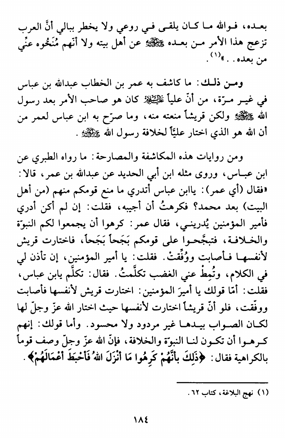 نام کتاب : التشيع المفترى عليه ، مداخلات وهوامش نقدية على كتاب (تطور الفكر السياسي الشيعي من الشورى إلى ولاية الفقيه) نویسنده : خالد ابا ذر العطية جلد : 1 صفحه : 184