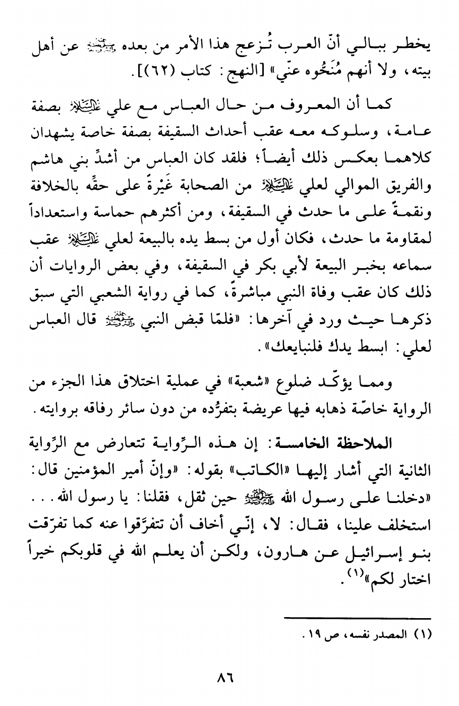 نام کتاب : التشيع المفترى عليه ، مداخلات وهوامش نقدية على كتاب (تطور الفكر السياسي الشيعي من الشورى إلى ولاية الفقيه) نویسنده : خالد ابا ذر العطية جلد : 1 صفحه : 86