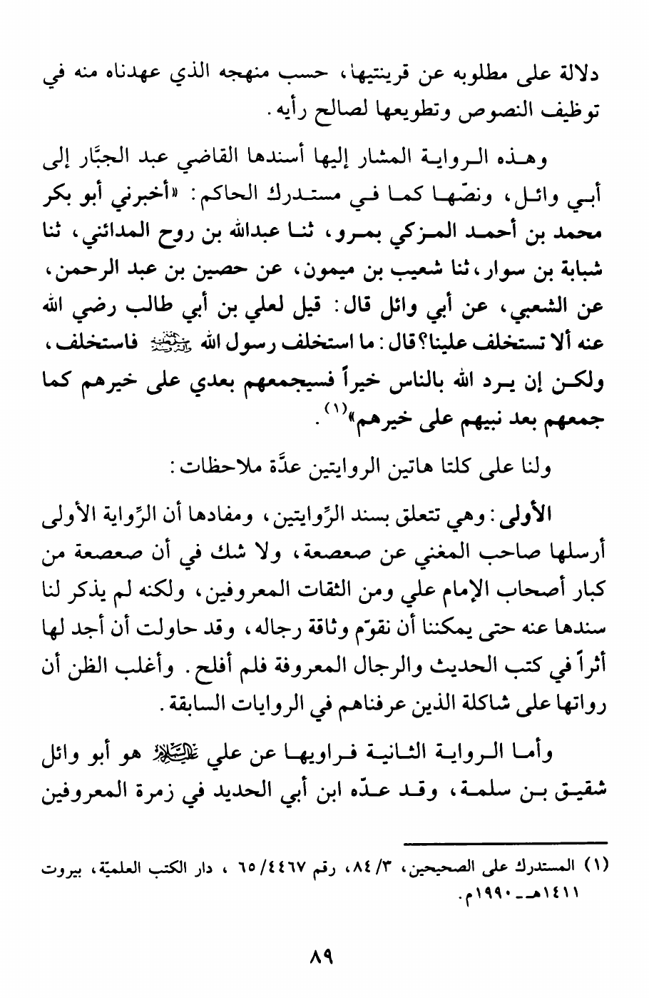 نام کتاب : التشيع المفترى عليه ، مداخلات وهوامش نقدية على كتاب (تطور الفكر السياسي الشيعي من الشورى إلى ولاية الفقيه) نویسنده : خالد ابا ذر العطية جلد : 1 صفحه : 89