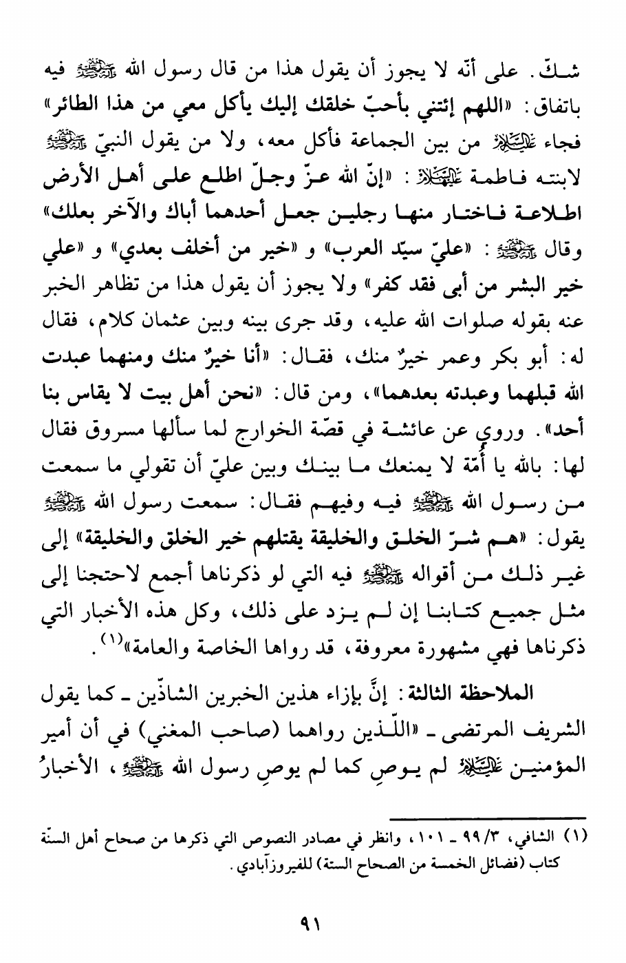 نام کتاب : التشيع المفترى عليه ، مداخلات وهوامش نقدية على كتاب (تطور الفكر السياسي الشيعي من الشورى إلى ولاية الفقيه) نویسنده : خالد ابا ذر العطية جلد : 1 صفحه : 91