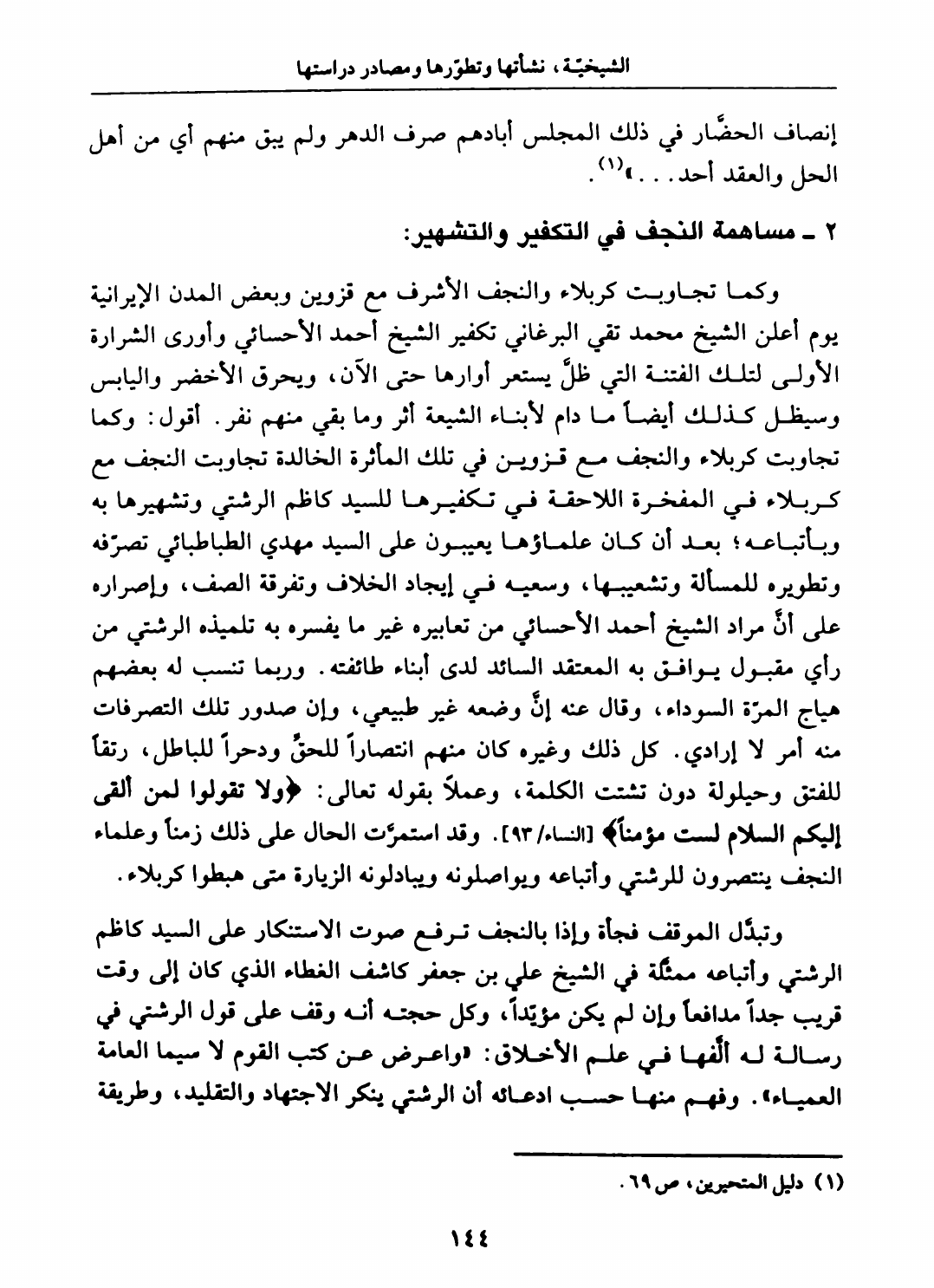 الشيخية ، نشأتها وتطورها ومصادر دراستها