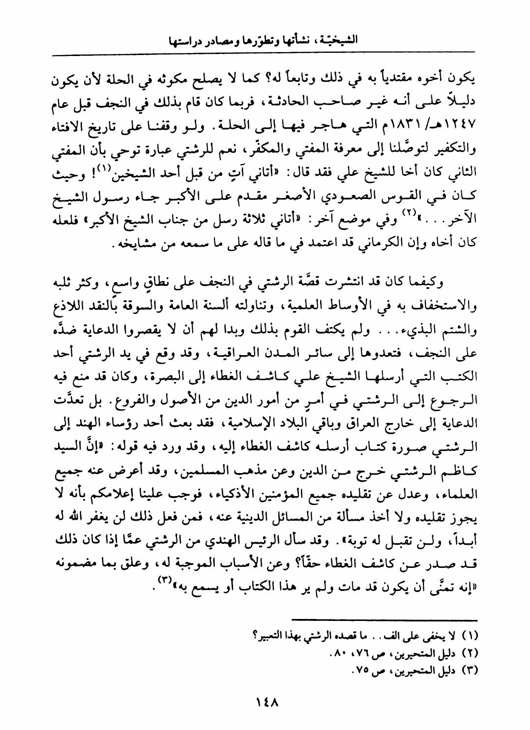 الشيخية ، نشأتها وتطورها ومصادر دراستها