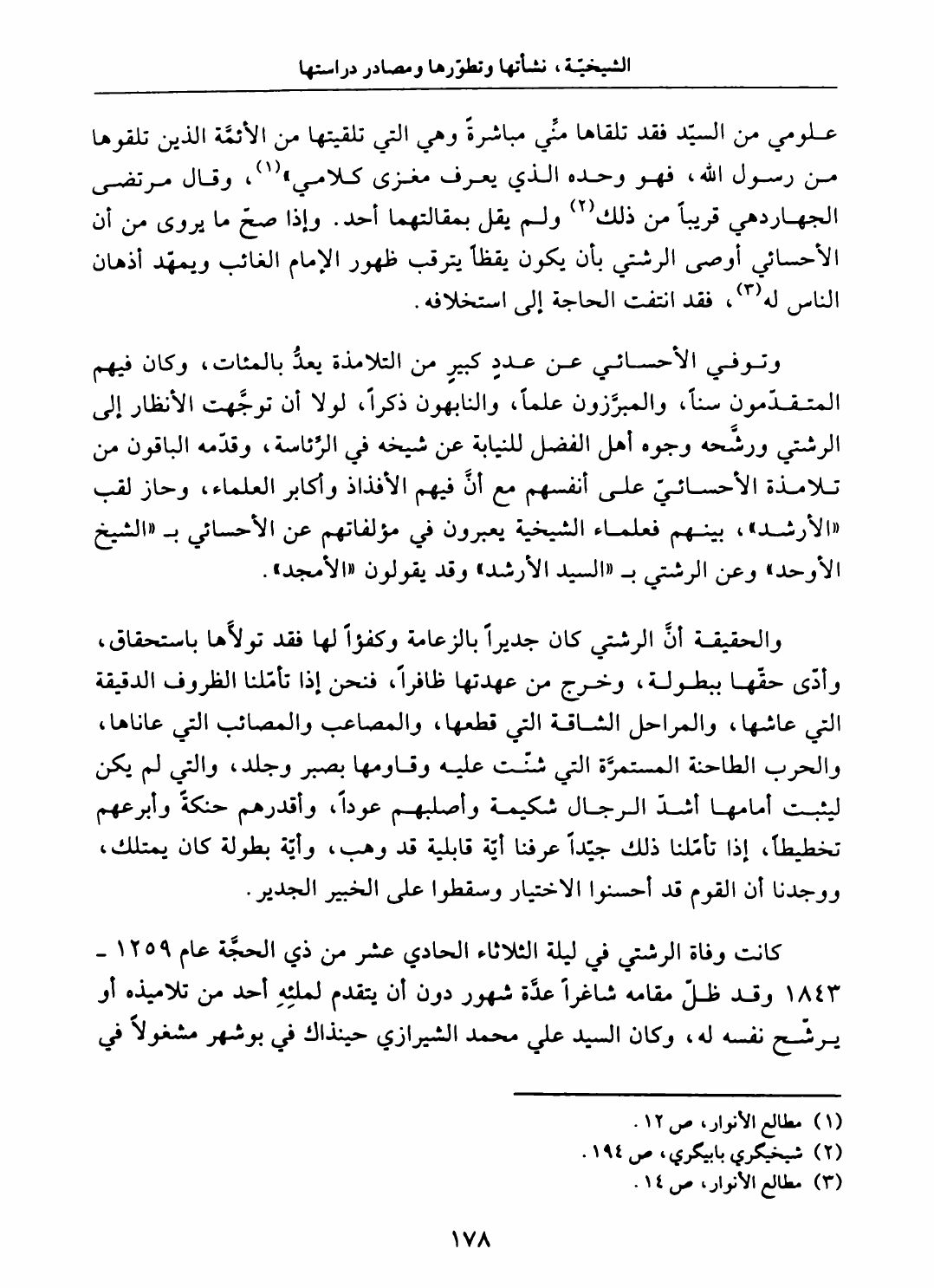 الشيخية ، نشأتها وتطورها ومصادر دراستها