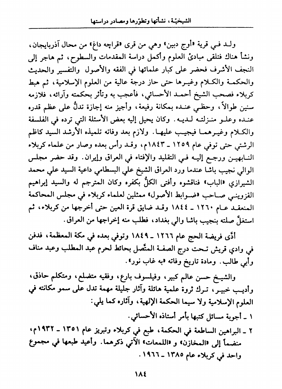 الشيخية ، نشأتها وتطورها ومصادر دراستها