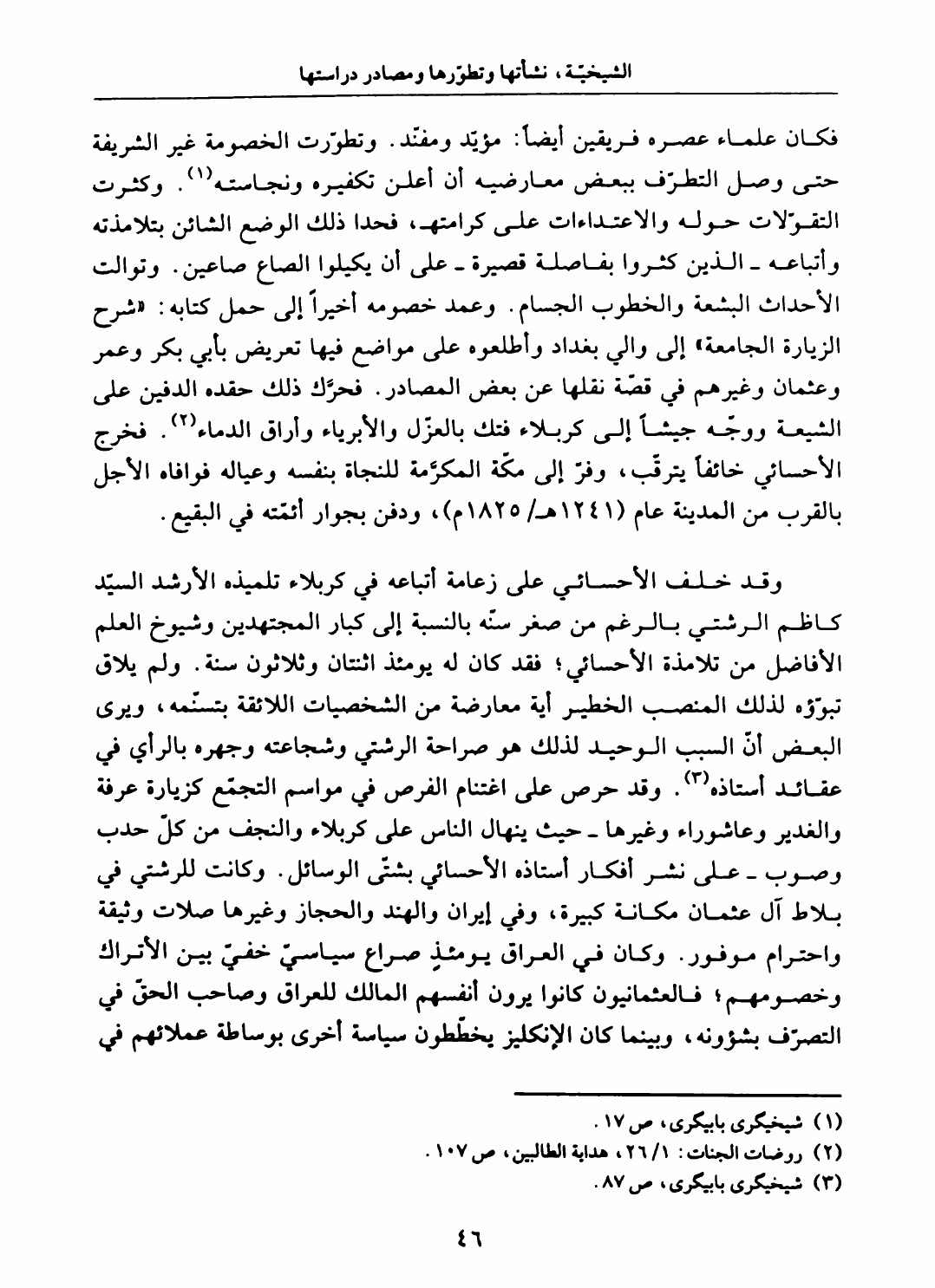 الشيخية ، نشأتها وتطورها ومصادر دراستها