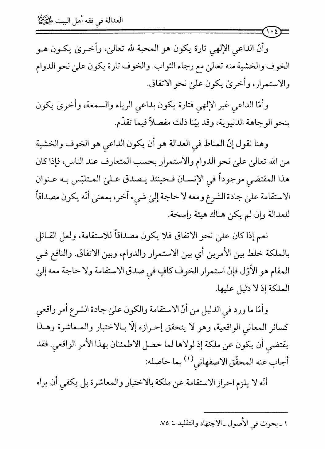 نام کتاب : العدالة في فقه أهل البيت عليهم السلام، تقريراً لبحث أية الله الحاج الشيخ مسلم الداوري نویسنده : الشيخ محمد علي صالح المعلم جلد : 1 صفحه : 104
