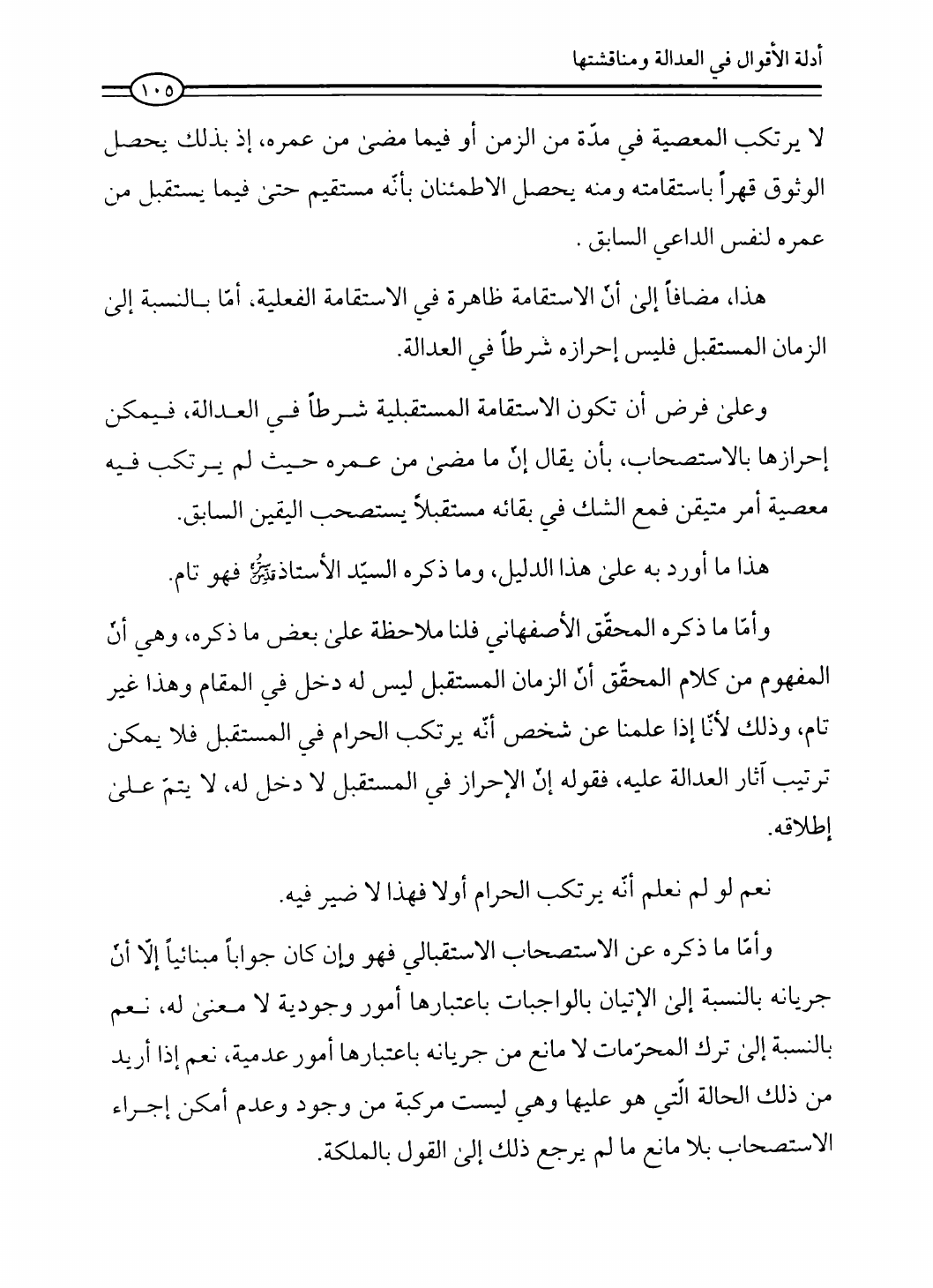 نام کتاب : العدالة في فقه أهل البيت عليهم السلام، تقريراً لبحث أية الله الحاج الشيخ مسلم الداوري نویسنده : الشيخ محمد علي صالح المعلم جلد : 1 صفحه : 105