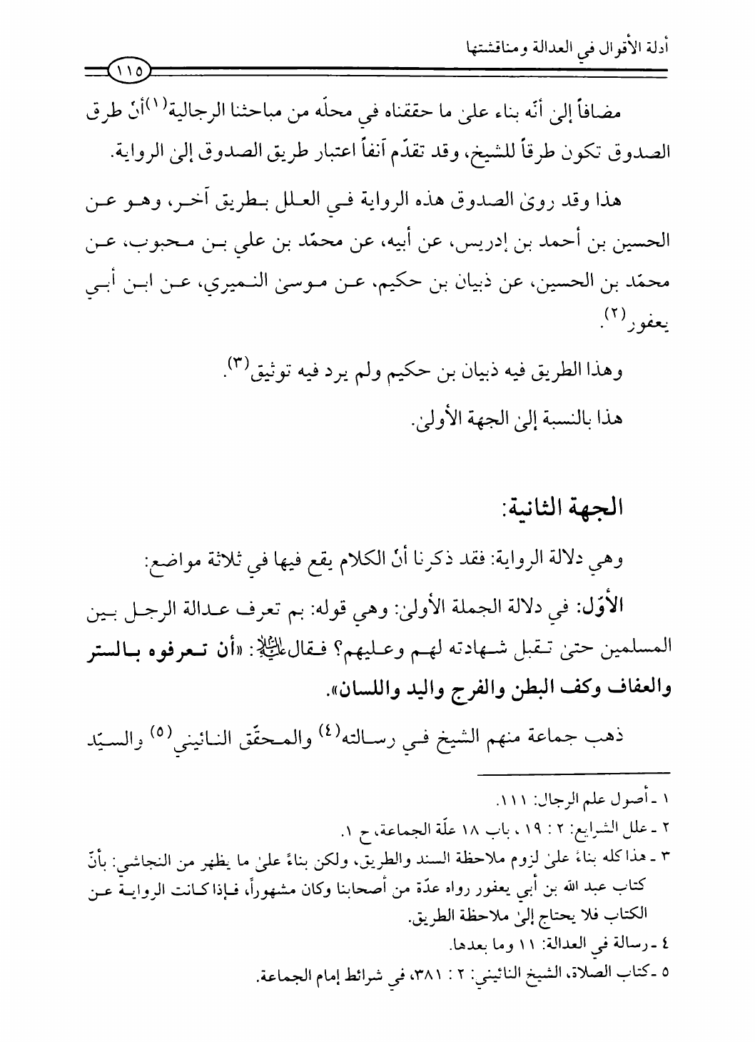 نام کتاب : العدالة في فقه أهل البيت عليهم السلام، تقريراً لبحث أية الله الحاج الشيخ مسلم الداوري نویسنده : الشيخ محمد علي صالح المعلم جلد : 1 صفحه : 115