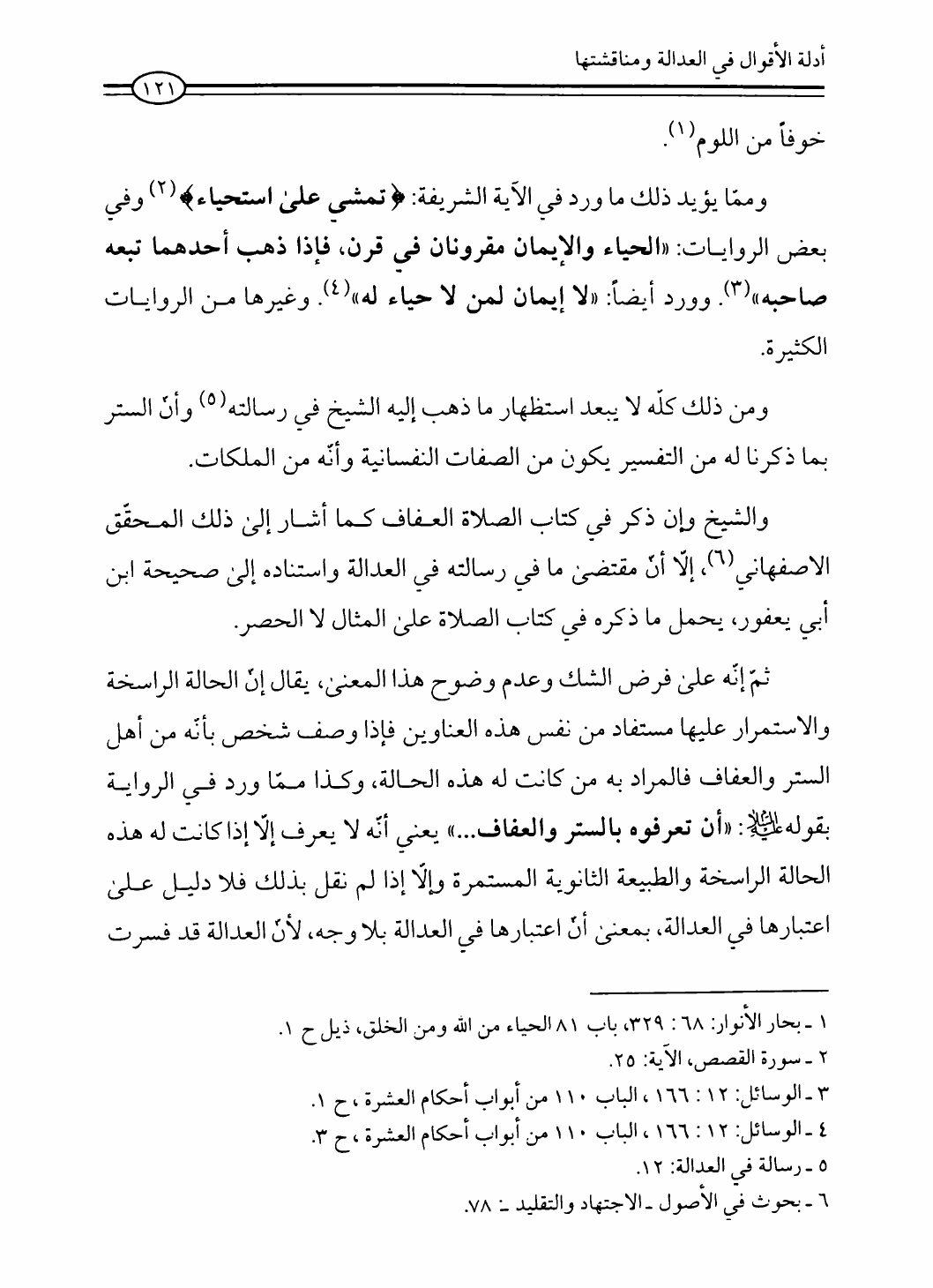 نام کتاب : العدالة في فقه أهل البيت عليهم السلام، تقريراً لبحث أية الله الحاج الشيخ مسلم الداوري نویسنده : الشيخ محمد علي صالح المعلم جلد : 1 صفحه : 121