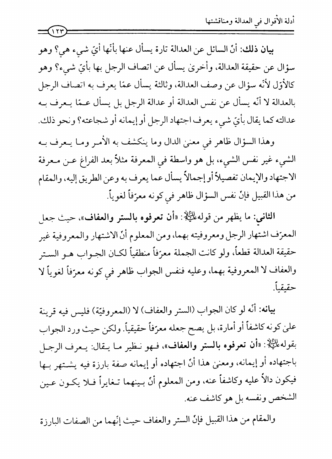 نام کتاب : العدالة في فقه أهل البيت عليهم السلام، تقريراً لبحث أية الله الحاج الشيخ مسلم الداوري نویسنده : الشيخ محمد علي صالح المعلم جلد : 1 صفحه : 123